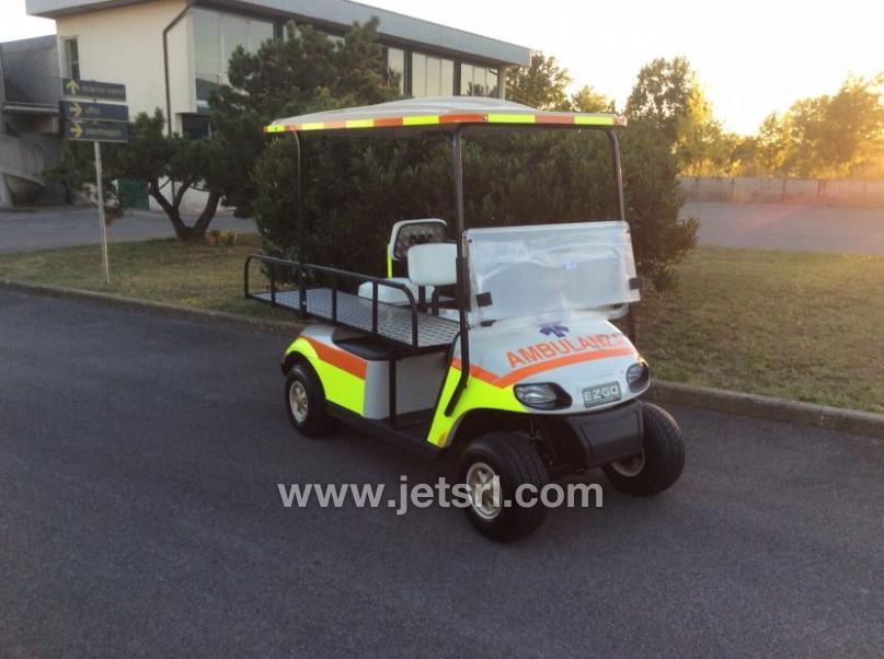 Una golf car progettata per consentire interventi rapidi nel momento in cui si presenta una situazione di prima emergenza dove una normale ambulanza faticherebbe ad arrivare.